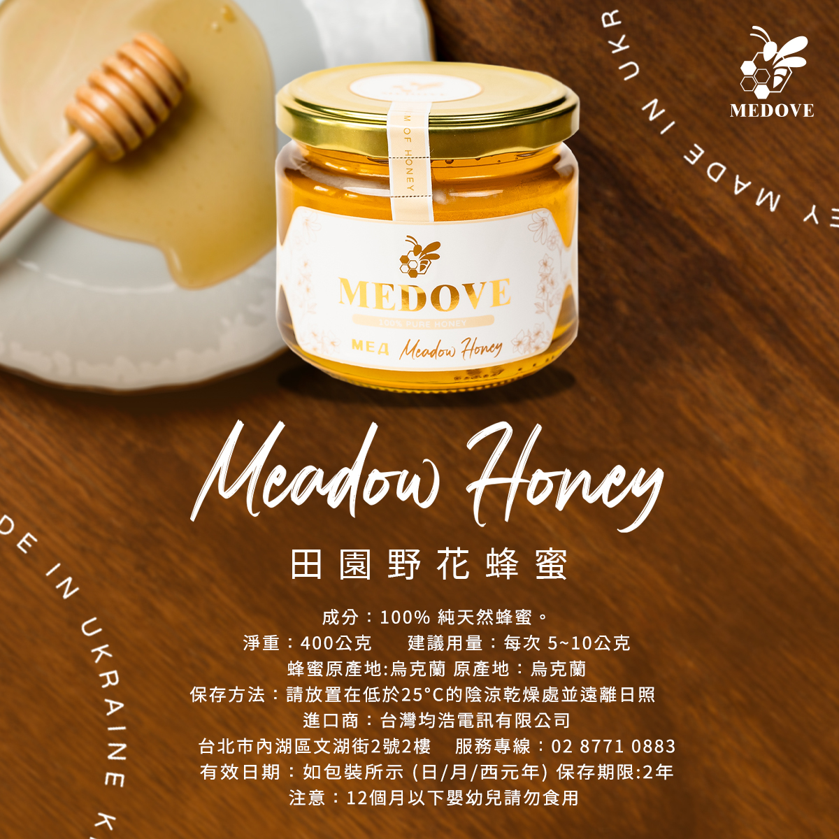 MEDOVE 田園野花蜂蜜是一款來自烏克蘭的多花種蜂蜜,融合了多種田園野花的精華,帶有豐富的花香和多層次的口感。這款蜂蜜營養豐富,適合日常食用,是追求自然風味和健康生活的理想選擇。